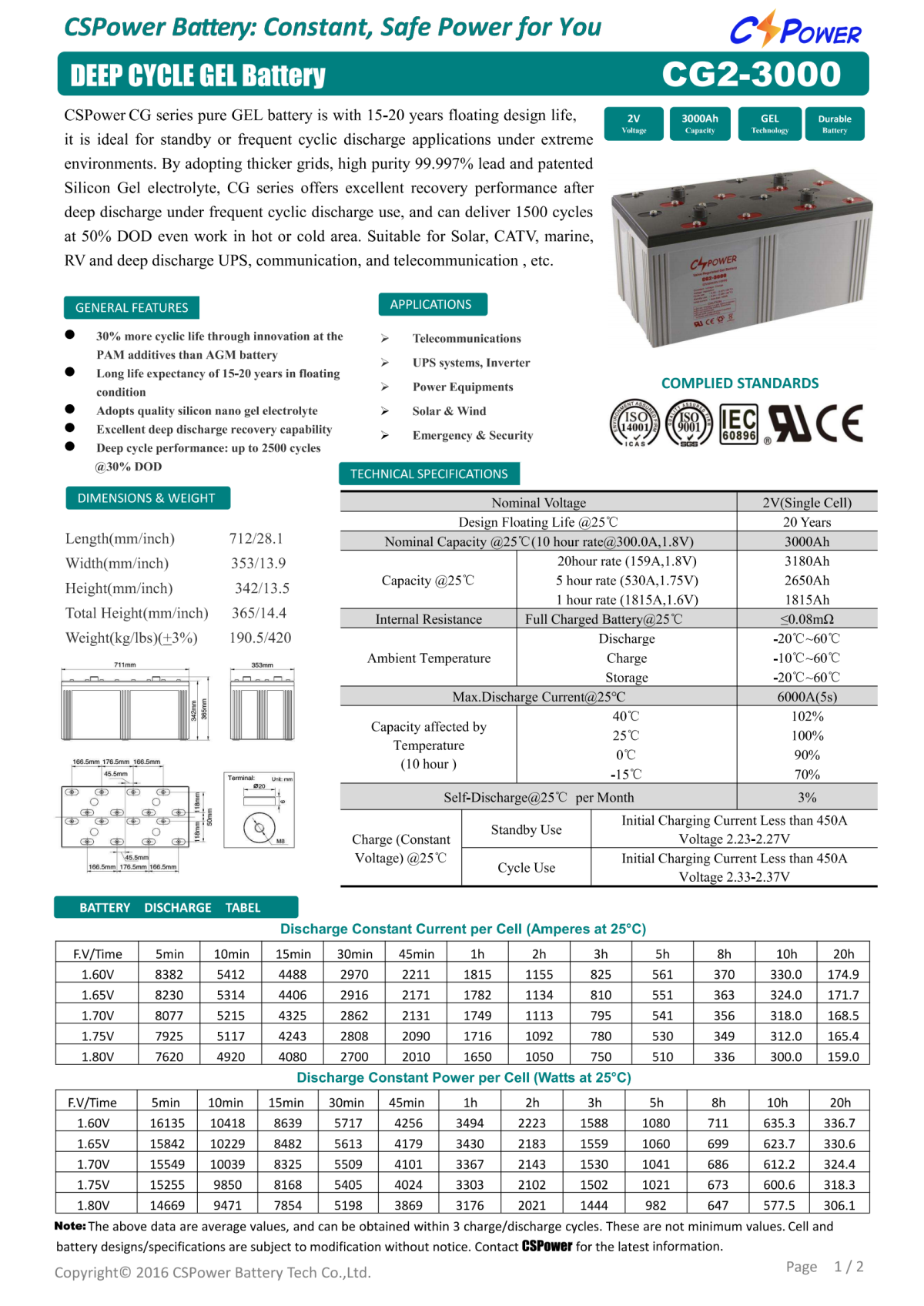 CSPower CG2-3000 Deep Cycle GEL Battery