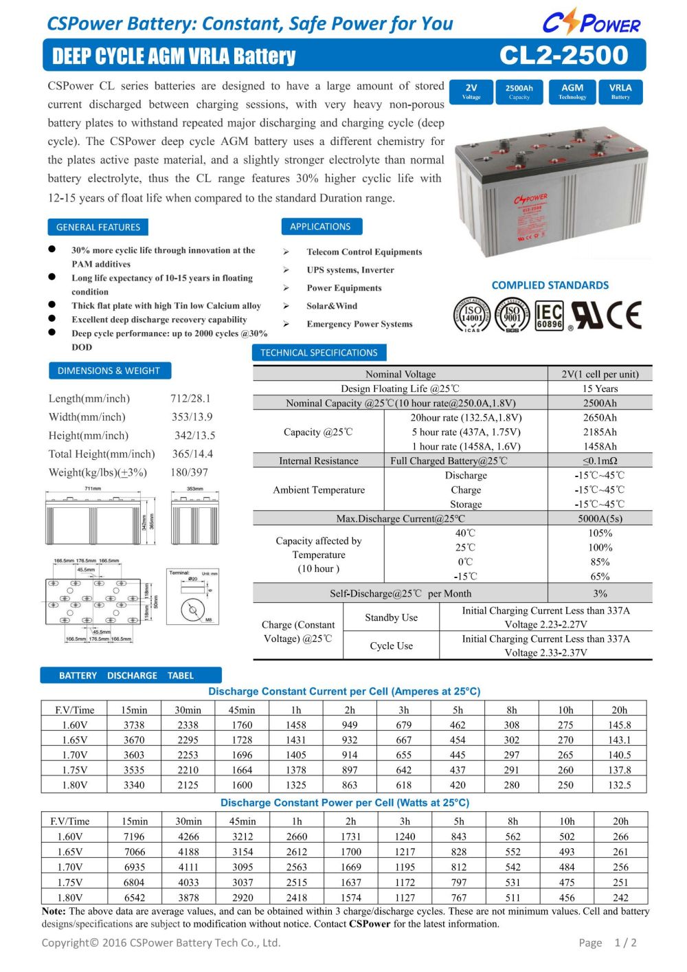 CSPower CL2-2500 Deep Cycle AGM Battery
